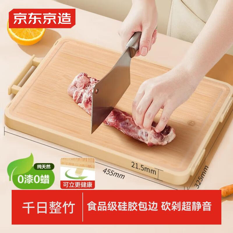 京东京造 静音菜板 砧案板切菜食品级家用整竹【可立更干净】45*32*2.1cm