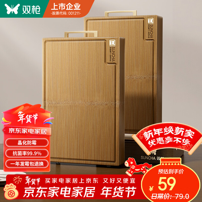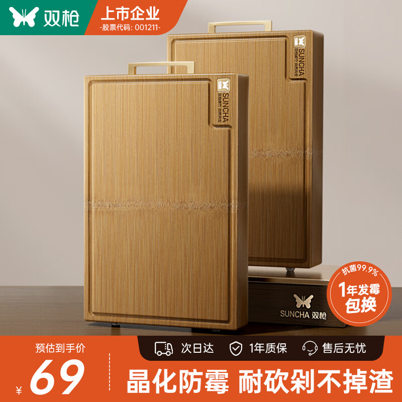双枪(Suncha)菜板 晶化整竹抗菌防霉家用加厚食品级砧板实木切菜案板45*30*3cm