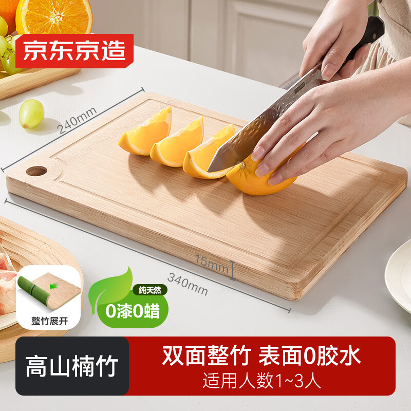 京东京造 菜板 整竹静音实木切菜板案板厨房面板水果家用【食品级】40cm