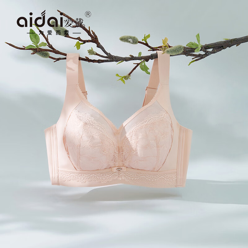 爱戴内衣女全罩杯软钢圈防下垂显瘦薄款透气收副乳大胸显小蕾丝文胸 裸肤色 85D
