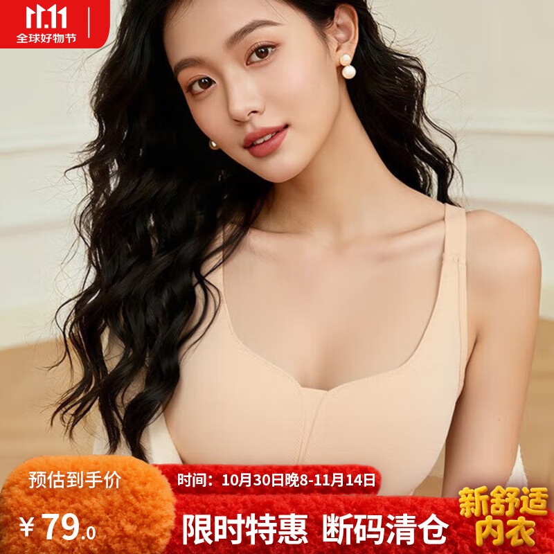 千奈美大胸显小防下垂文胸无钢圈大码无痕内衣防下垂收副乳胸罩 裸感肤 M (75BCD)