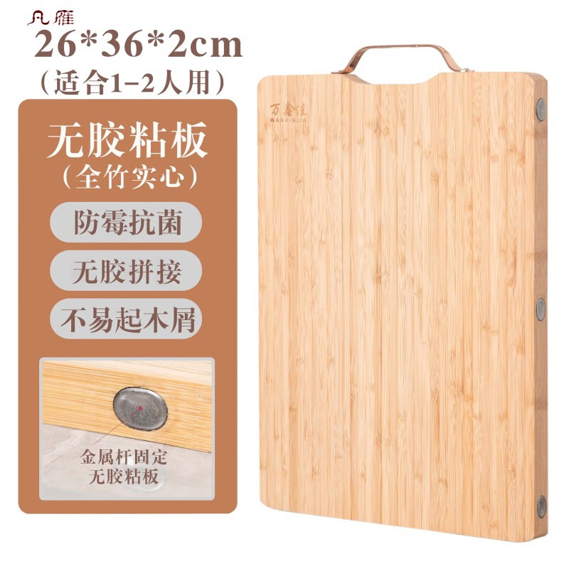 百春宝全竹菜板家用实心无胶竹菜板刀板砧板面板案板切菜板防霉批发 无胶菜板36*26*2CM全竹实心 无胶