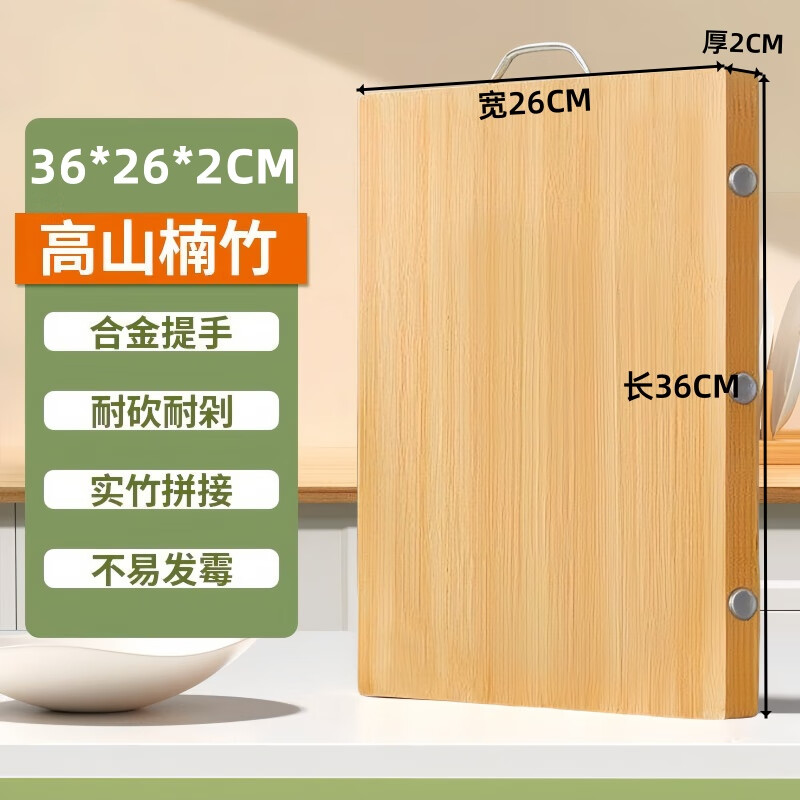 揽翼楠竹菜板全竹无胶楠竹切菜板子案板实心食品级砧板家用 天然无胶水全竹菜板36*26*2CM