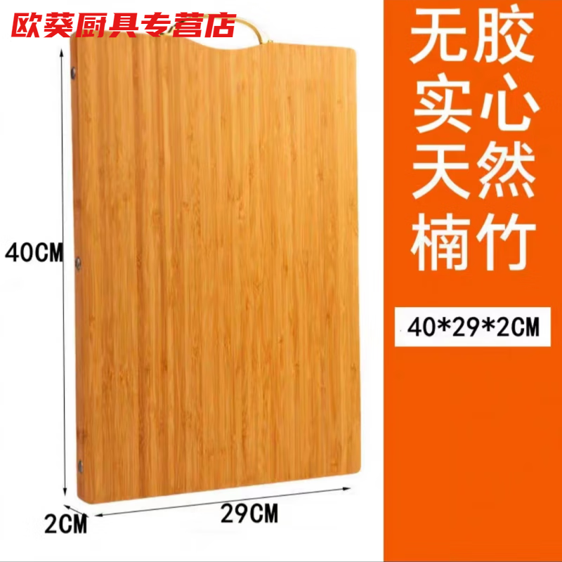 安俊晟竹切菜板子全竹砧板整竹仿竹面板案板实心家用加厚 【无胶菜板】40*30*2cm纯竹 【纯竹实心】无胶款加厚