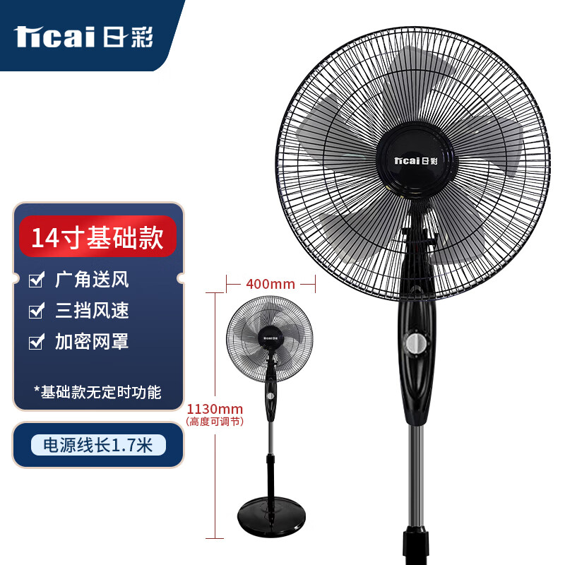 日彩电风扇落地扇家用电扇大风量宿舍风扇空气流通摇头小程序控制 黑色14寸机械无定时 电机质保两年