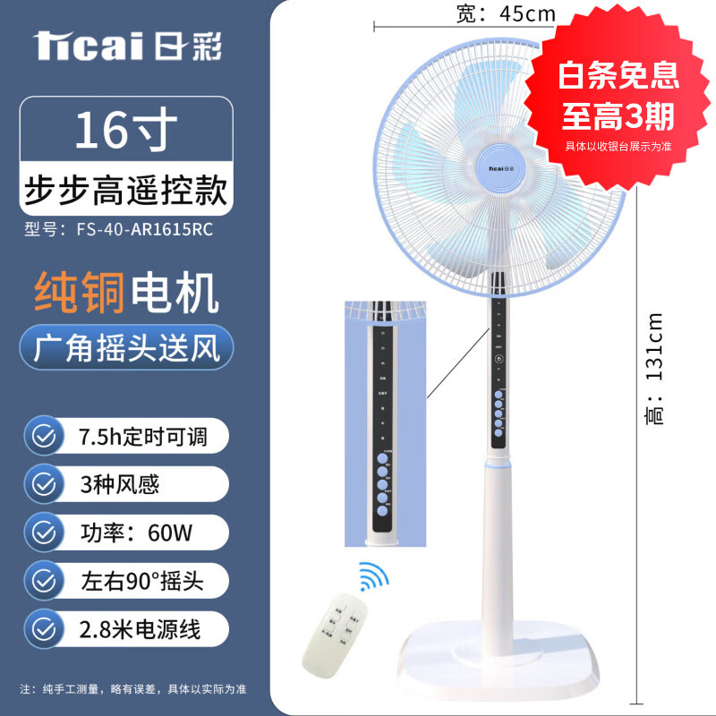日彩电风扇落地扇家用立式商用大风力台式遥控扇宿舍摇头工业电扇 16英寸5叶(大风量低噪音)无定时
