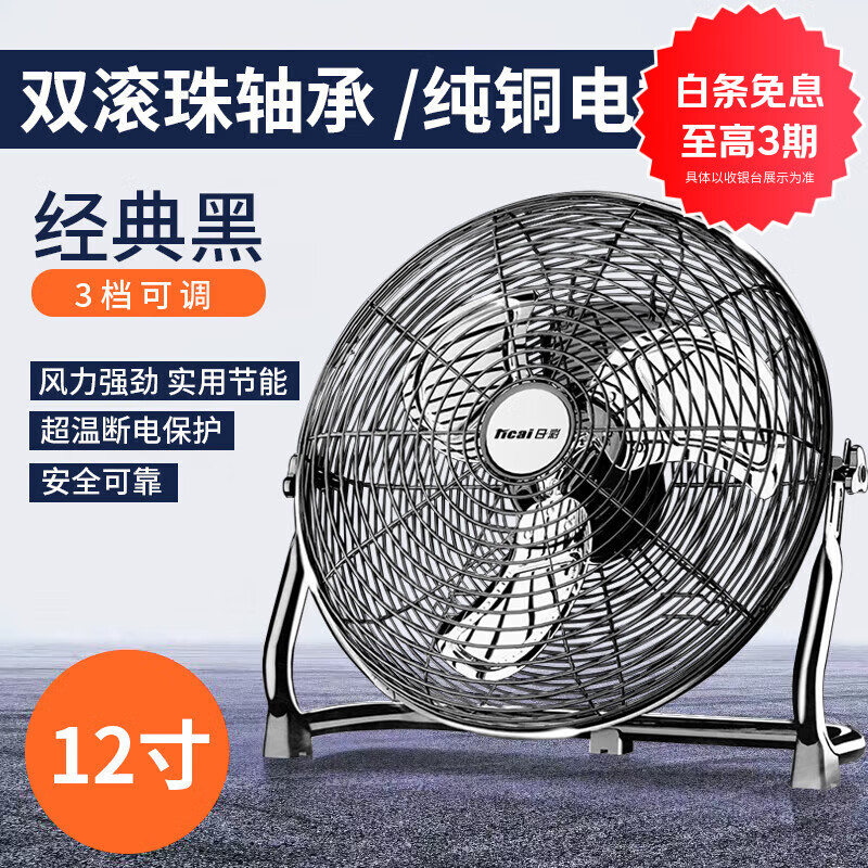日彩电风扇趴地扇工业风扇强力趴地风扇商用地扇台地扇大功率除甲醛 12寸 纯铜电机