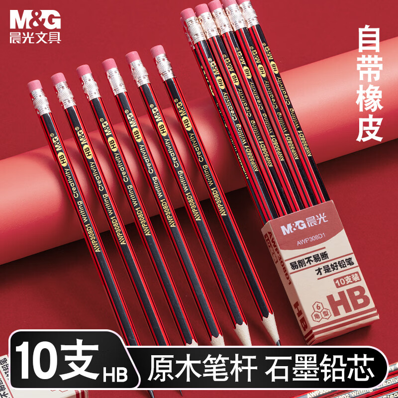 晨光(M&G)文具HB铅笔10支 红黑抽条六角木杆铅笔 学生书写美术素描绘图木质铅笔AWP308D1