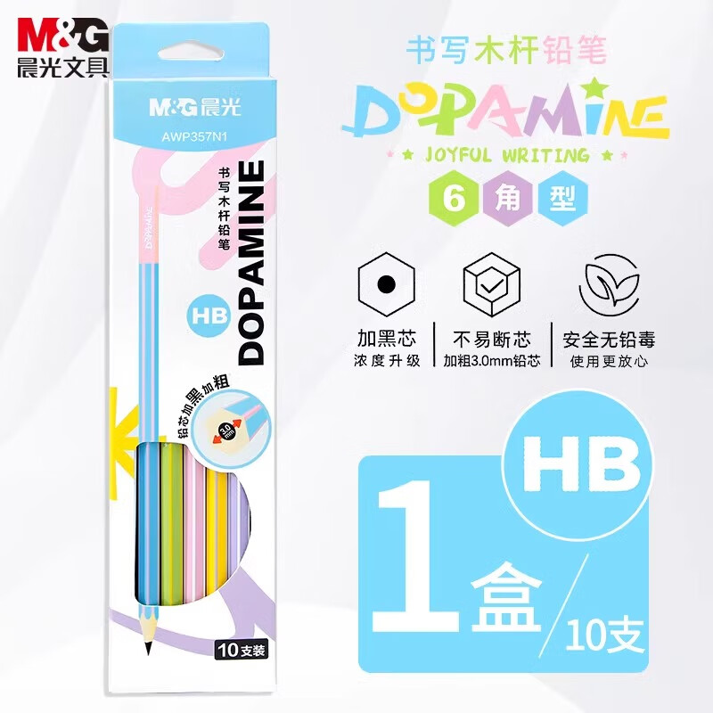 晨光(M&G)文具多巴胺HB六角木杆铅笔10支 加粗铅芯 学生书写美术素描绘图木质铅笔AWP357N1