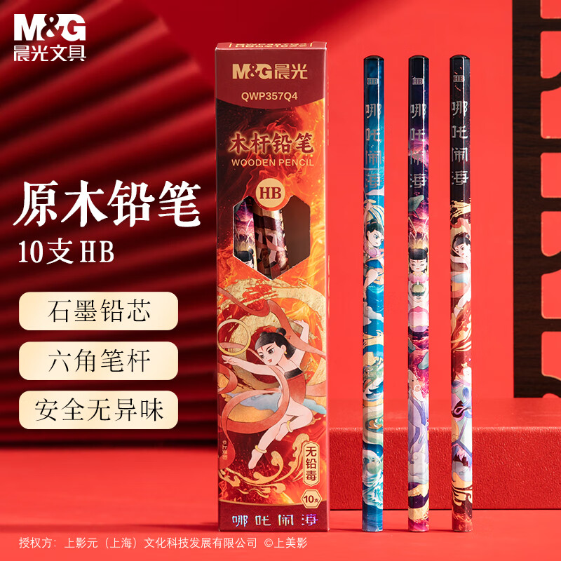 晨光(M&G)文具HB铅笔10支 哪吒闹海六角木杆铅笔 学生考试涂卡书写美术素描绘图木质铅笔QWP357Q4