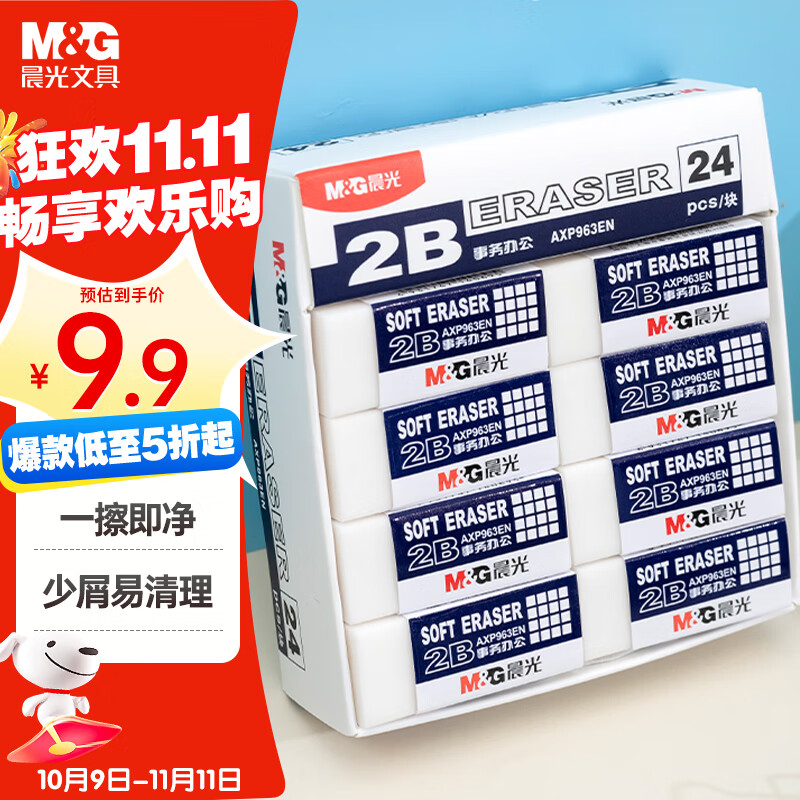 晨光(M&G)文具24块净白2B橡皮擦 学生考试美术绘图橡皮 易擦少屑简约办公中高考铅笔用AXP963EN