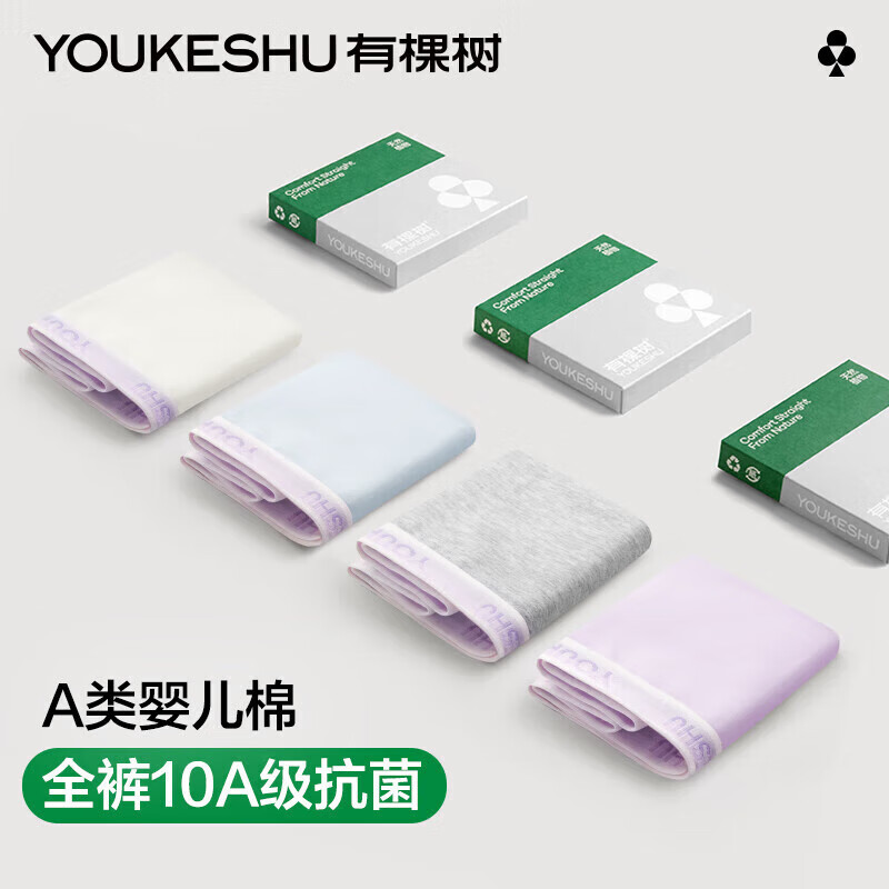 有棵树A类婴儿棉女士内裤女纯棉10A抗菌加长裆高弹透气精梳棉女生三角裤