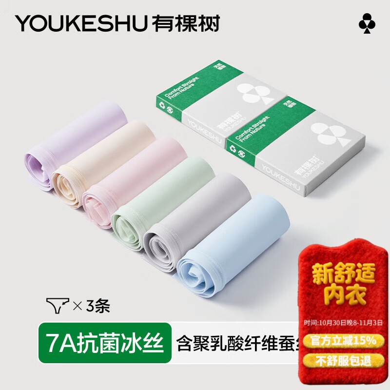 有棵树女士内裤女7A抗菌聚乳酸桑蚕丝隐形无痕透气高弹速干女生三角短裤