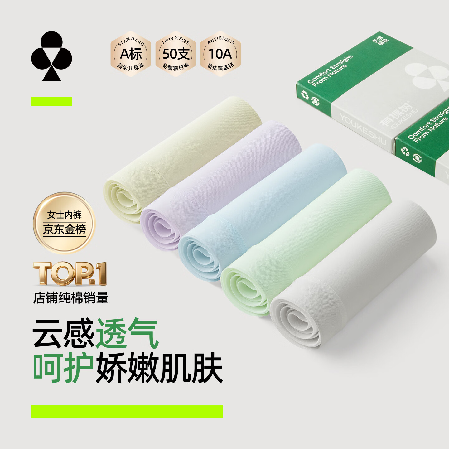 有棵树女士内裤女10A抗菌A类加长纯棉裆无痕中腰包臀女生三角短裤 奶白+葡萄绿+氧气蓝【升级10A抗菌】 3条 L