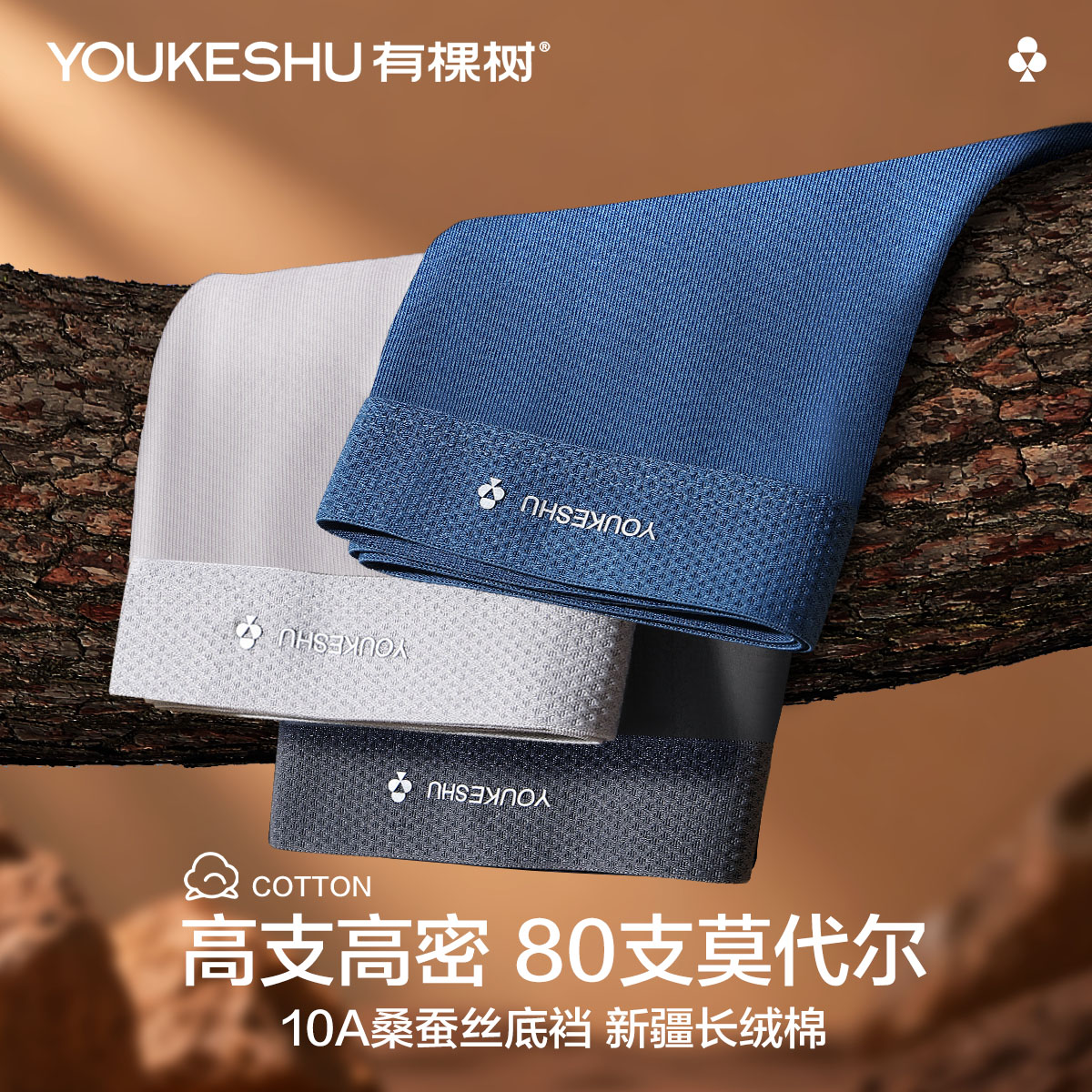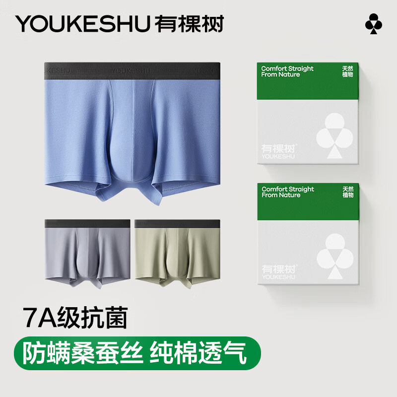 有棵树(YOUKESHU)10A抑菌男士内裤男莫代尔男式桑蚕丝内档男生高弹大码平角棉裤衩