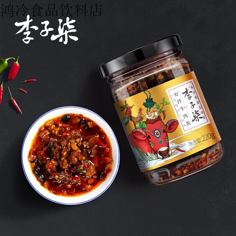 李子柒牛肉酱好拌拌饭酱香菇酱剁椒酱蛋黄酱香辣拌面调味下饭辣酱 李子柒牛肉酱220g*1瓶