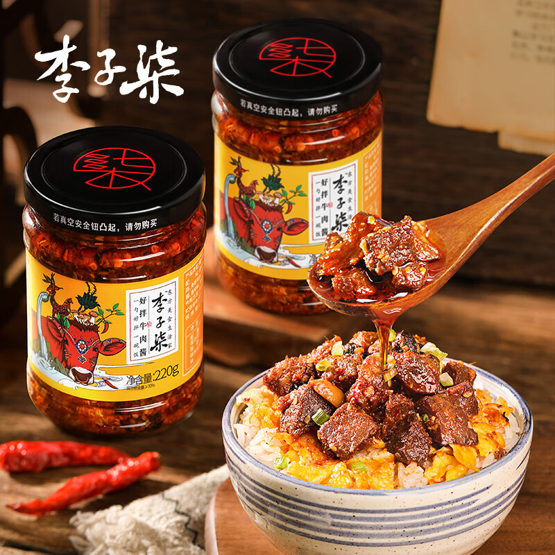 李子柒牛肉酱香辣拌饭酱拌面酱下饭酱调料酱辣椒酱罐装220g*2罐 李子柒牛肉酱220g*2罐