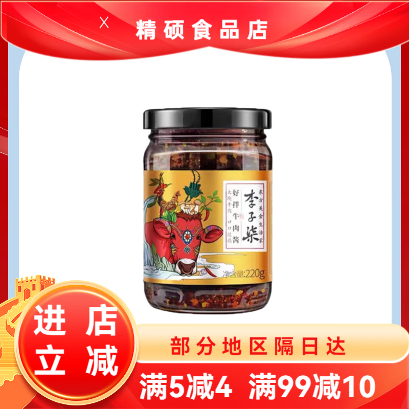 李子柒好拌牛肉酱拌饭酱香辣拌面调味火锅酱料220g*2瓶装下饭辣酱 李子柒牛肉酱220g*1瓶