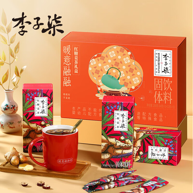 李子柒红糖姜茶手工姜枣茶红糖水姜汤送女友礼盒冲饮单独小包装 【内含杯子+勺子】红糖姜茶礼盒