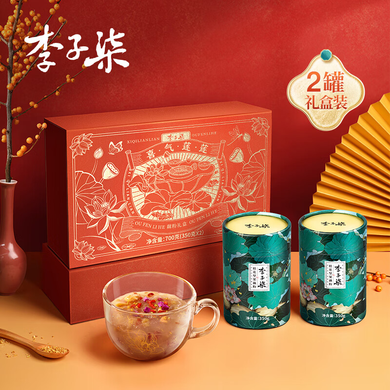 李子柒喜气莲莲藕粉年货礼盒 350g*2罐营养早餐 送礼父母长辈莲藕粉