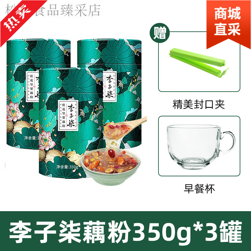 藕粉坚果桂花莲子羹营养早餐网红西湖350g 李子柒藕粉350g*3罐送早餐杯+封