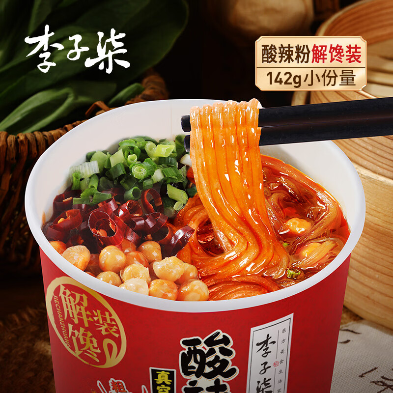 李子柒 酸辣粉 桶装免煮冲泡红薯湿粉方便速食四川粉丝米线 薯你弹酸辣粉142g*1桶 方便速食