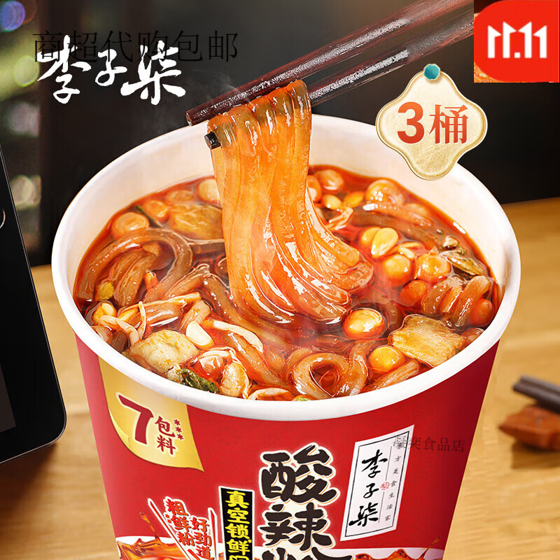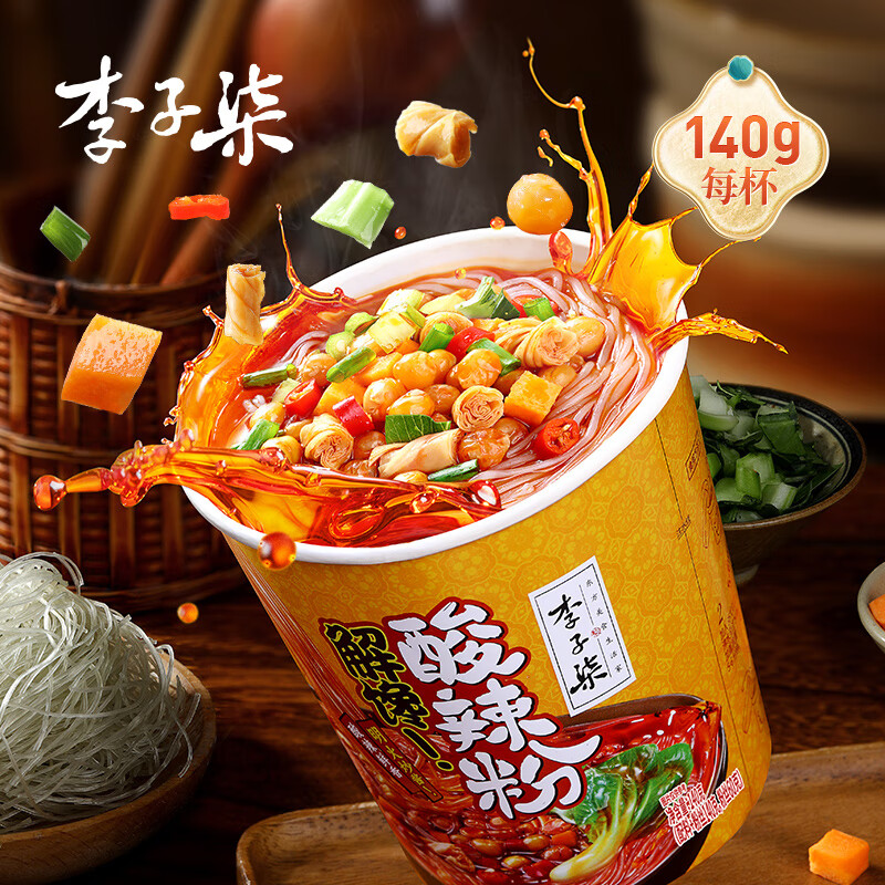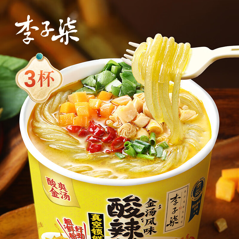 李子柒 酸辣粉 桶装免煮冲泡红薯湿粉方便速食四川粉丝米线 酸辣粉(金汤风味)150g*3杯 方便速食