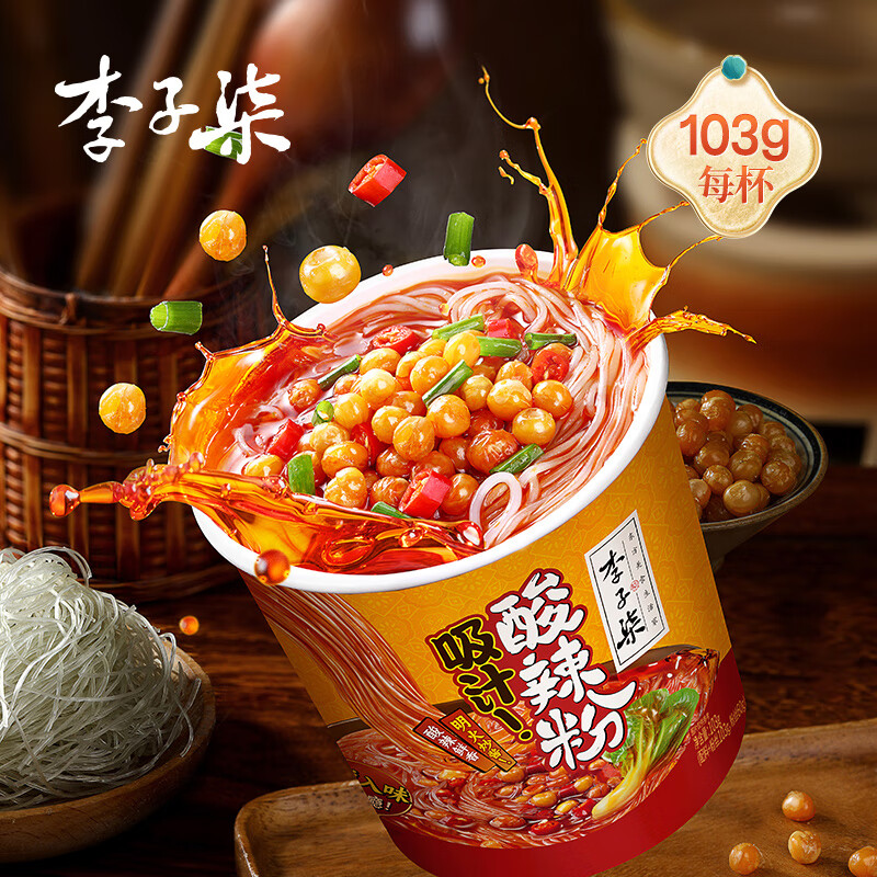 李子柒酸辣粉杯装四川干粉红薯粉103g懒人速食免煮夜宵小吃美食 【超值12桶】酸辣粉103g*12桶