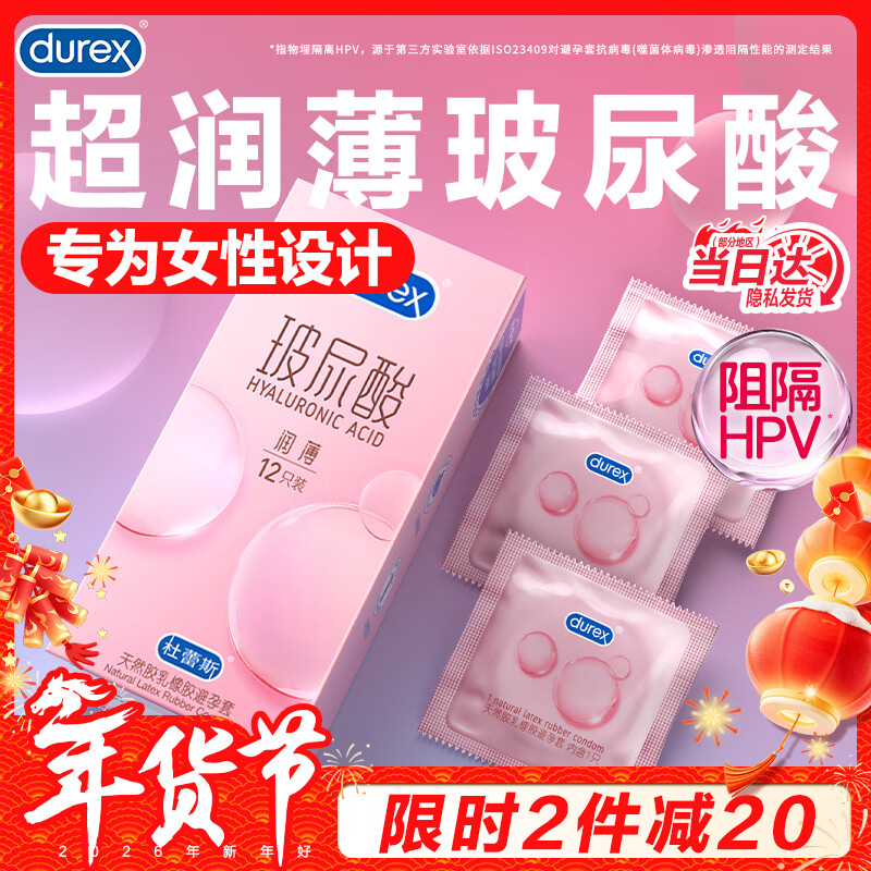 杜蕾斯(durex)玻尿酸避孕套 超薄润薄小水库安全套 润滑男女用套套成人情趣用品 【2件减10】玻尿酸超薄12只