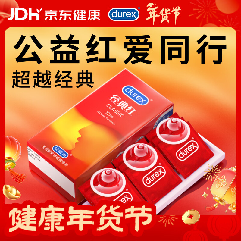 杜蕾斯避孕套超薄 安全套 经典红12只装 男女用 成人计生情趣用品 套套