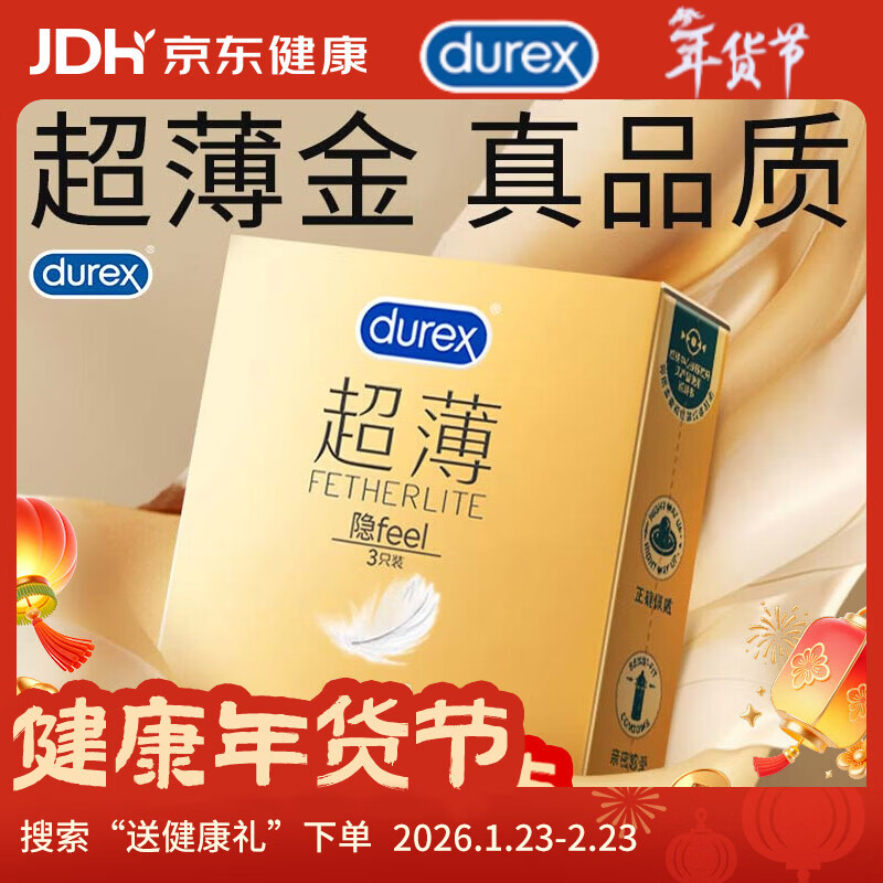 杜蕾斯 避孕套 安全套 超薄3只 润滑隐形 男女用 套套 计生用品 durex