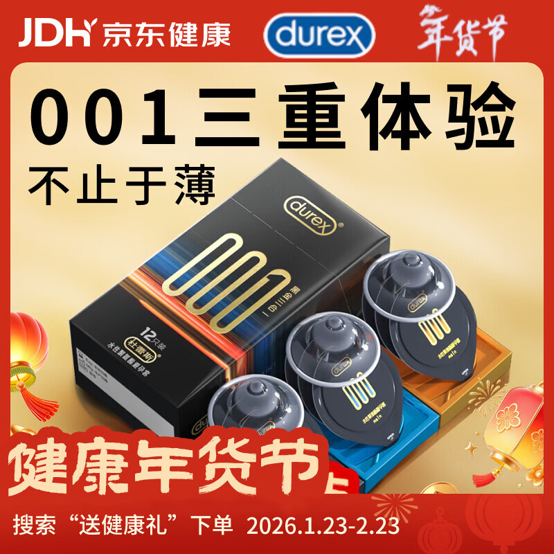 杜蕾斯(durex)避孕套安全套超薄润滑001黑金三合一12只男女用计生情趣用品套