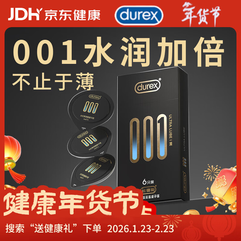 杜蕾斯 001隐形超薄无套裸入避孕套男专用水性聚氨酯0.01mm安全套 001聚氨酯黑金6只装 女性快潮秒喷套情趣计生性用品
