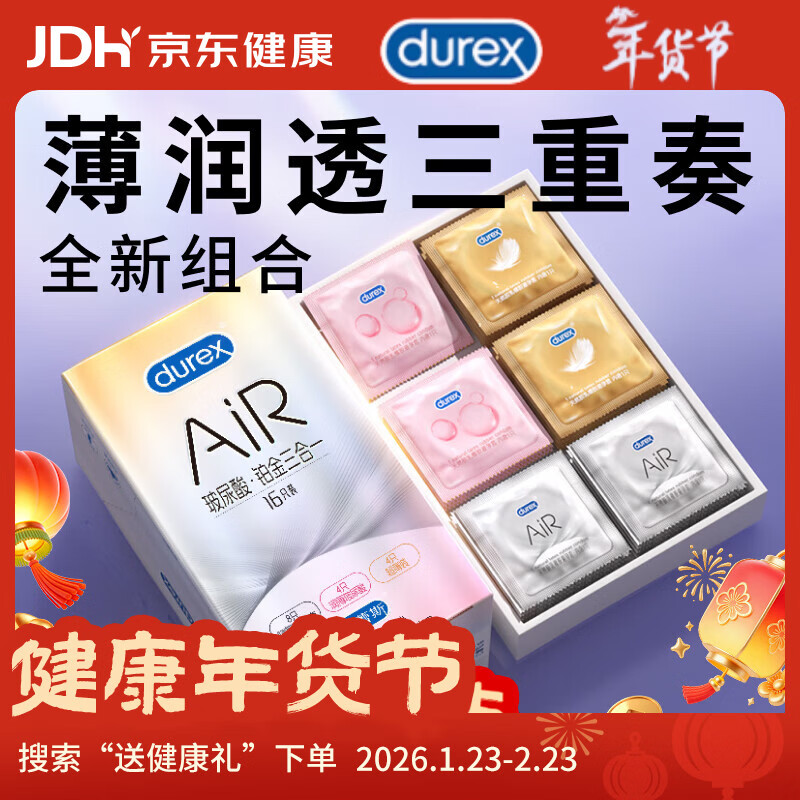 杜蕾斯避孕套AiR玻尿酸铂金三合一16只宽度52mm安全套超薄003避孕套