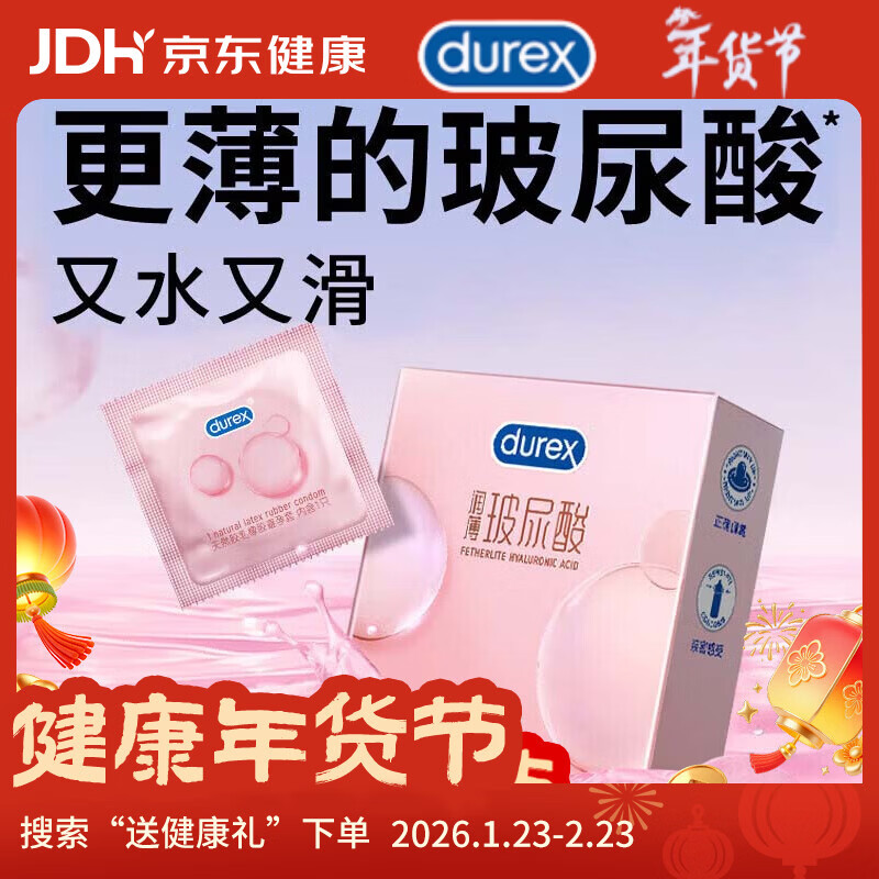 杜蕾斯(durex)玻尿酸避孕套安全套超薄18只 女性润滑计生情趣 成人用品