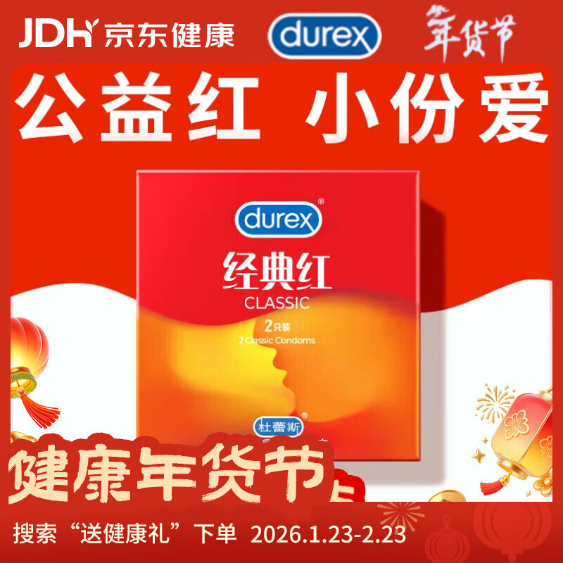 杜蕾斯避孕套超薄 安全套 经典红2只装 男女用 成人计生情趣用品 套套