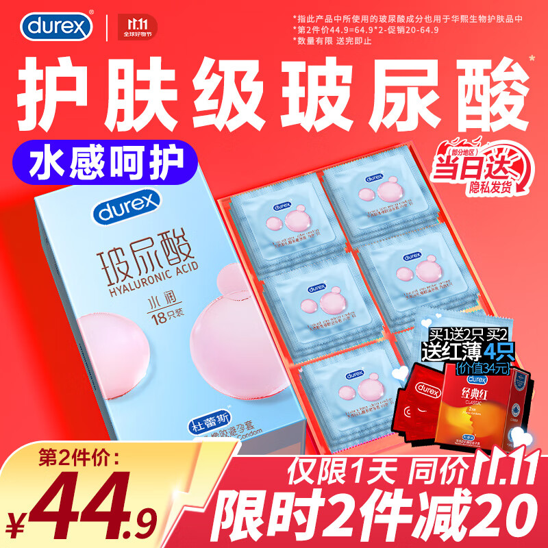 杜蕾斯(durex)玻尿酸避孕套安全套超薄18只 女性润滑计生情趣 成人用品