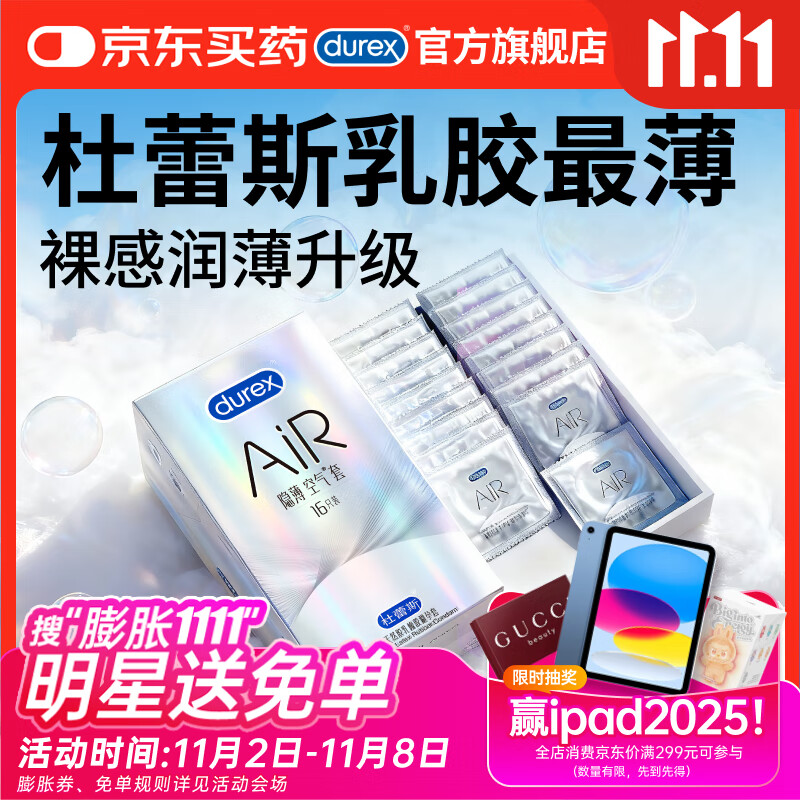 杜蕾斯AiR隐薄空气套16只 避孕套超薄 安全套 套套003 成人用品 男女用