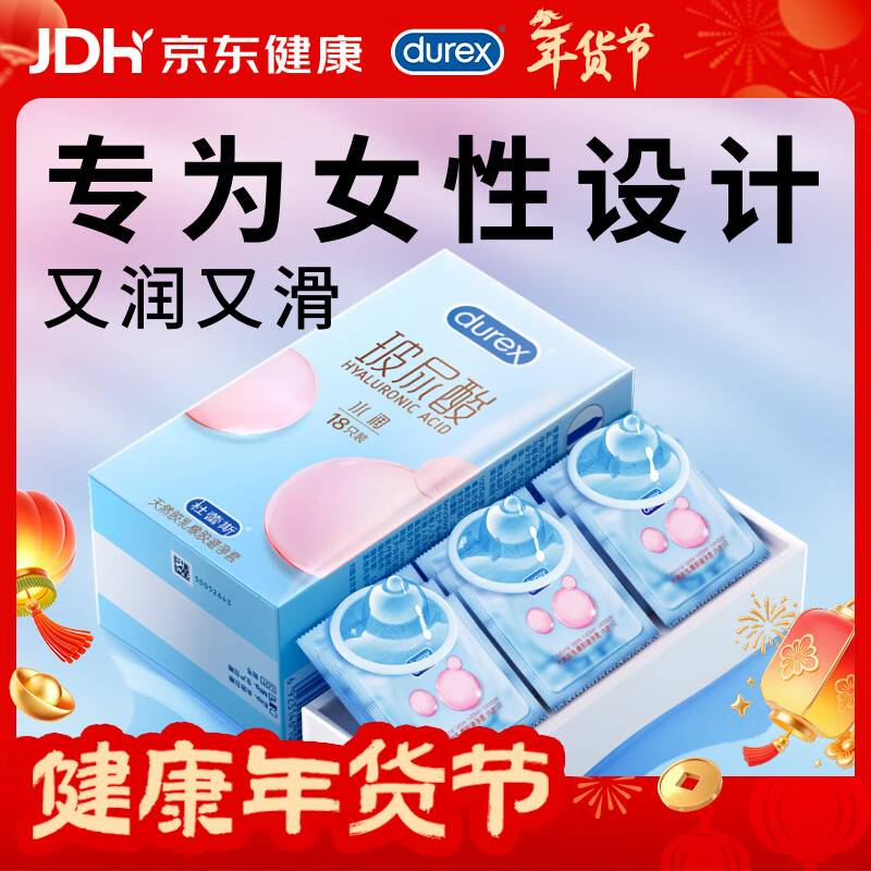 杜蕾斯(durex)玻尿酸避孕套安全套超薄18只 女性润滑计生情趣 成人用品