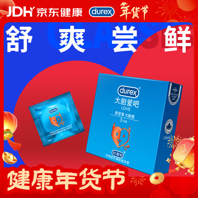 杜蕾斯(durex)大胆爱吧装 Love3只 男用避孕套 舒适润滑 安全套计生用品 3只装
