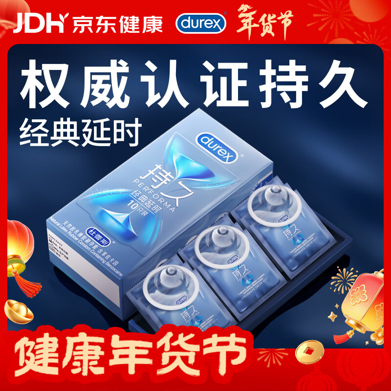 杜蕾斯(durex)延时避孕套 男专用持久防早泄敏感安全套 苯佐卡因延时三合一套套 【2件减60】经典延时10