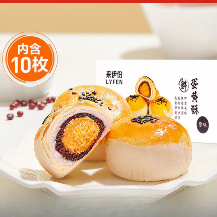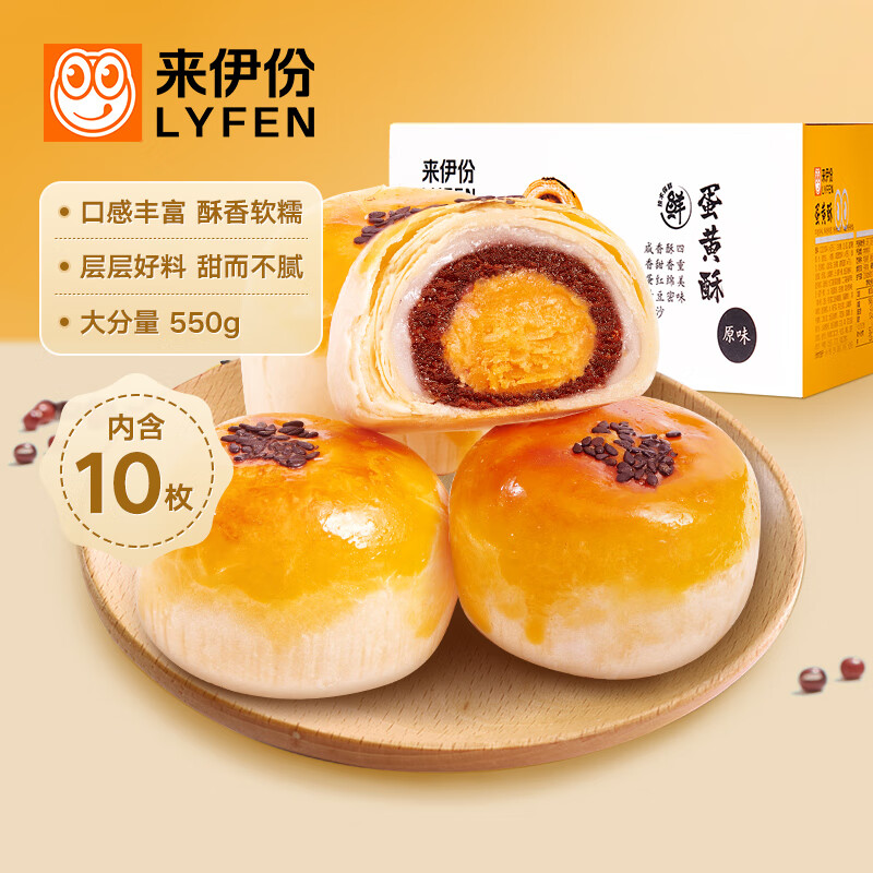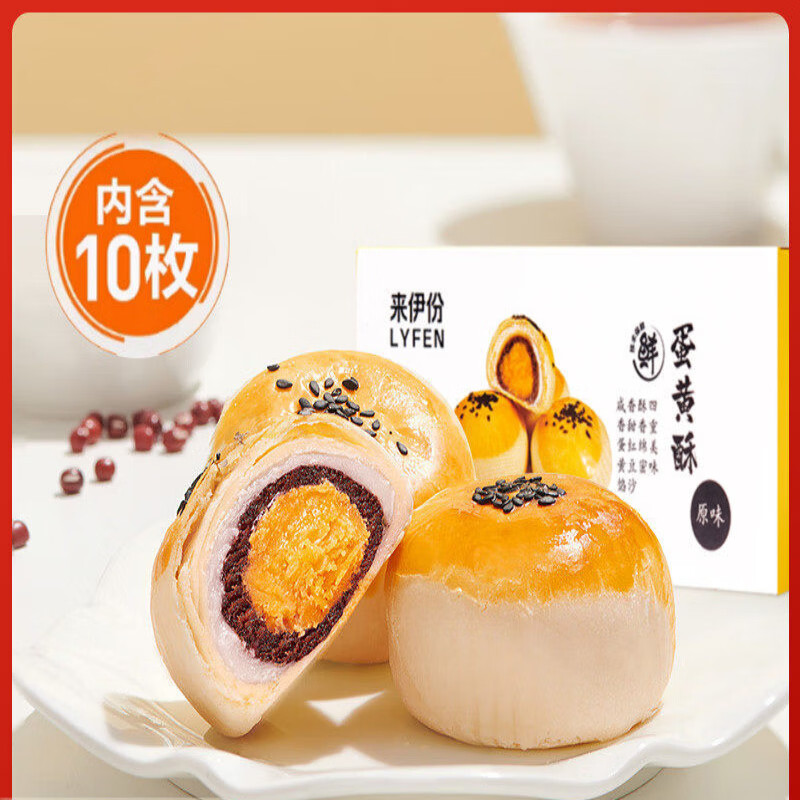 来伊份蛋黄酥零食咸味传统小吃蛋糕早餐中式糕点节日送礼团购 550g/10枚蛋黄酥 1盒