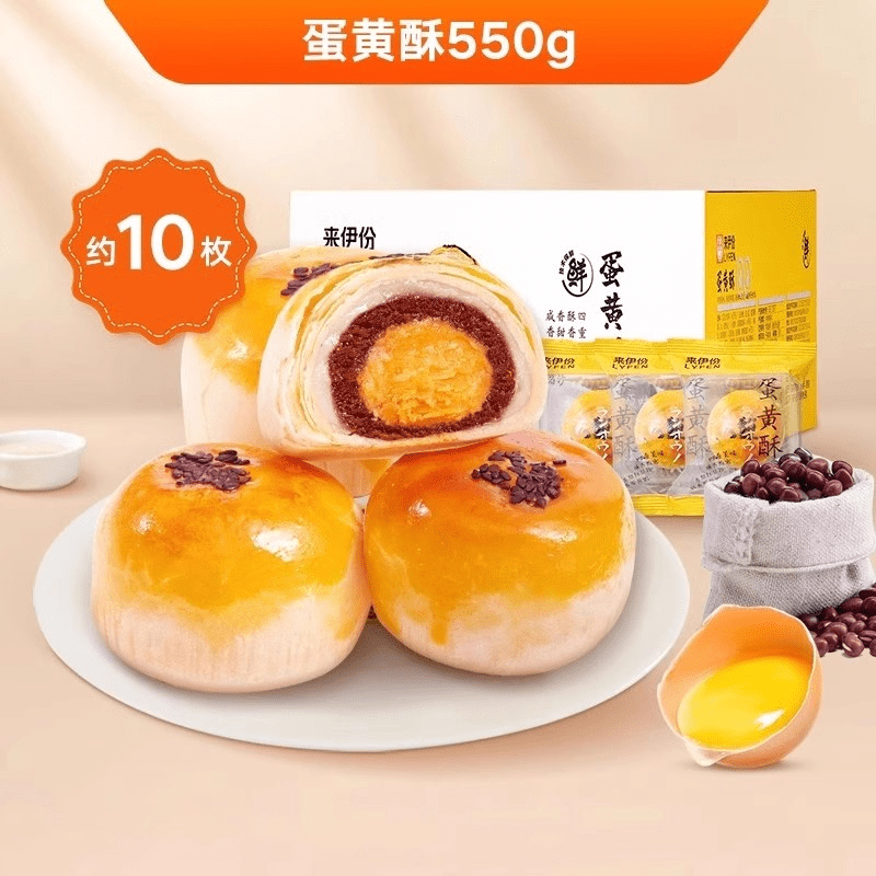 来伊份年货蛋黄酥550g整箱零食蛋糕早餐中式糕点节日送礼解馋 蛋黄酥550g*2(约20枚)