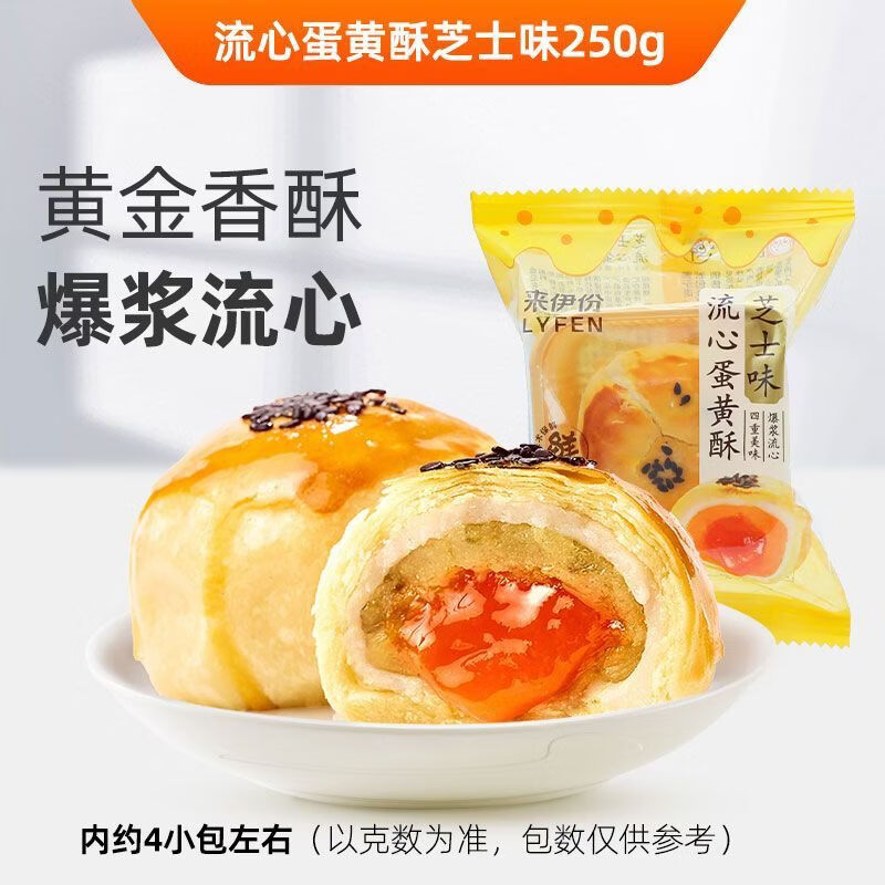 来伊份来伊份流心蛋黄酥500g芝士味零食中式蛋糕心小吃面包充饥营养早餐 流心蛋黄酥芝士味250g(约4包)