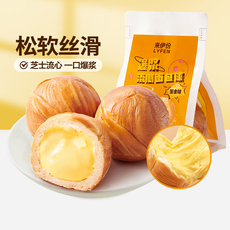 来伊份 吐司面包代餐早餐面包小口袋装下午茶零食整箱抗饿零食饱腹面包 225g芝士味爆浆流心面包球