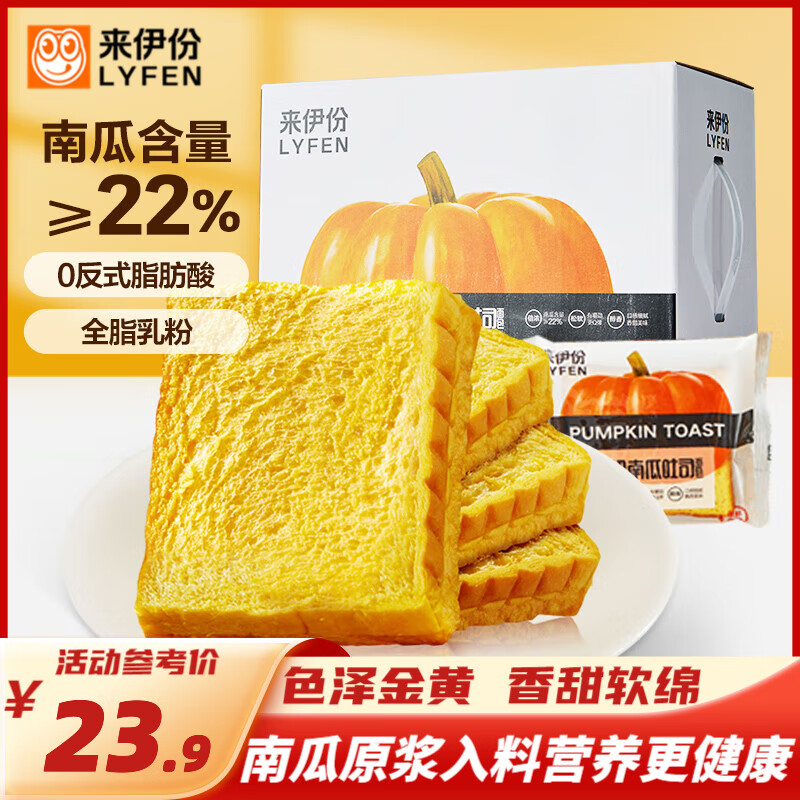 来伊份 吐司面包代餐早餐面包小口袋装下午茶零食整箱抗饿零食饱腹面包 南瓜吐司750g【约16包】