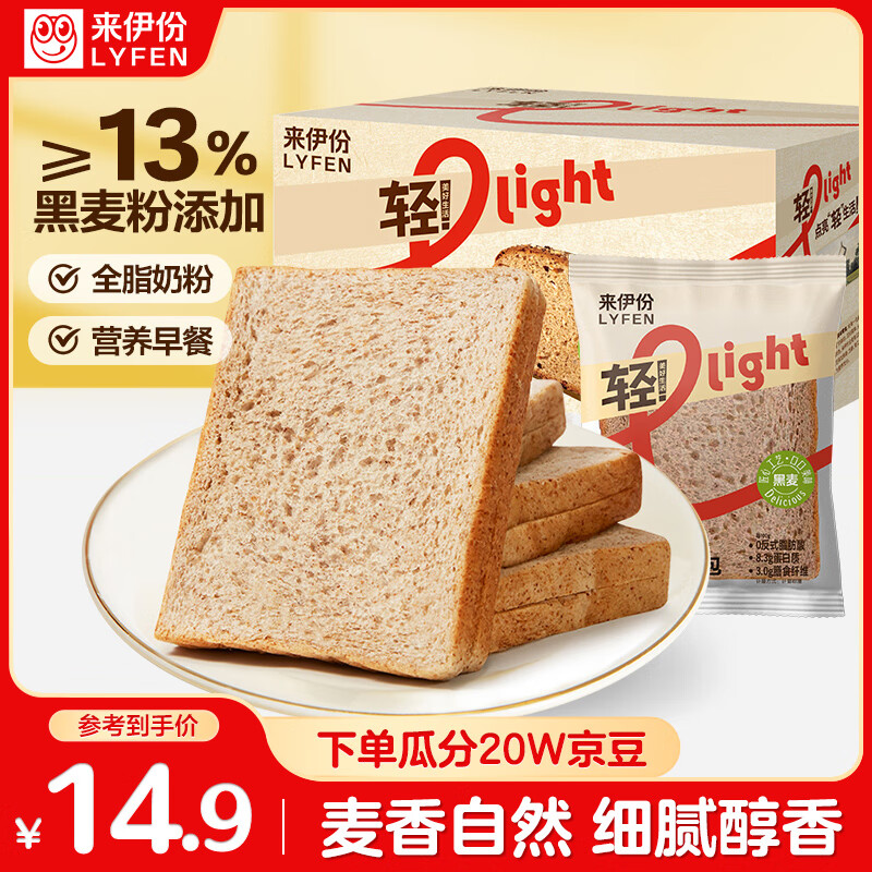 来伊份黑麦吐司面包450g 全麦早餐轻食代餐健身糕点点心蛋糕休闲零食