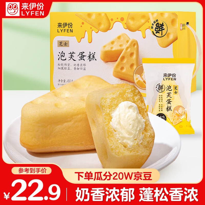 来伊份芝士泡芙蛋糕450g面包奶油夹心蛋糕糕点点心早餐下午茶休闲零食