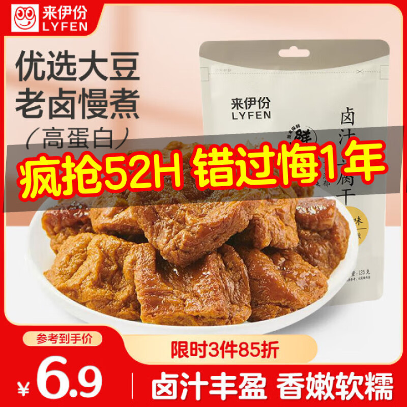 来伊份 卤汁豆腐干125g甜卤味 豆制品素食豆干零食即食小吃 独立包装