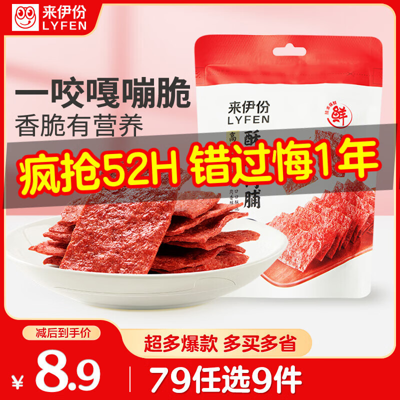 来伊份高蛋白酥脆猪肉脯原味35g靖江特产薯片即食解馋肉干肉脯休闲零食
